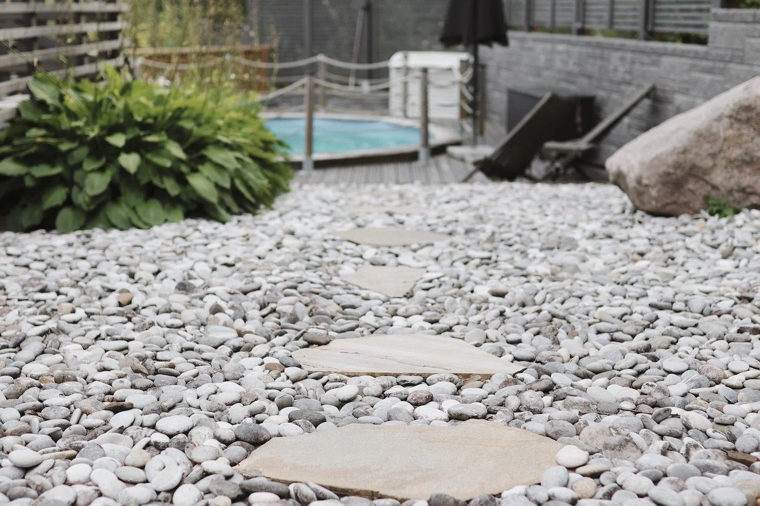Takapihan oleskelualue rajautuu kallioon, eikä siihen voitu juurikaan rakentaa uusia istutuksia. Vaalea koristekivi haluttiin säilyttää. Kivet nostettiin, rikkakasvit poistettiin ja alue puhdistettiin perusteellisesti.